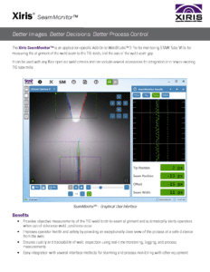 Includes a Xiris open arc weld camera system, industrial PC or HMI controller, preloaded with SeamMonitor™ software, and several accessories to suit your application.